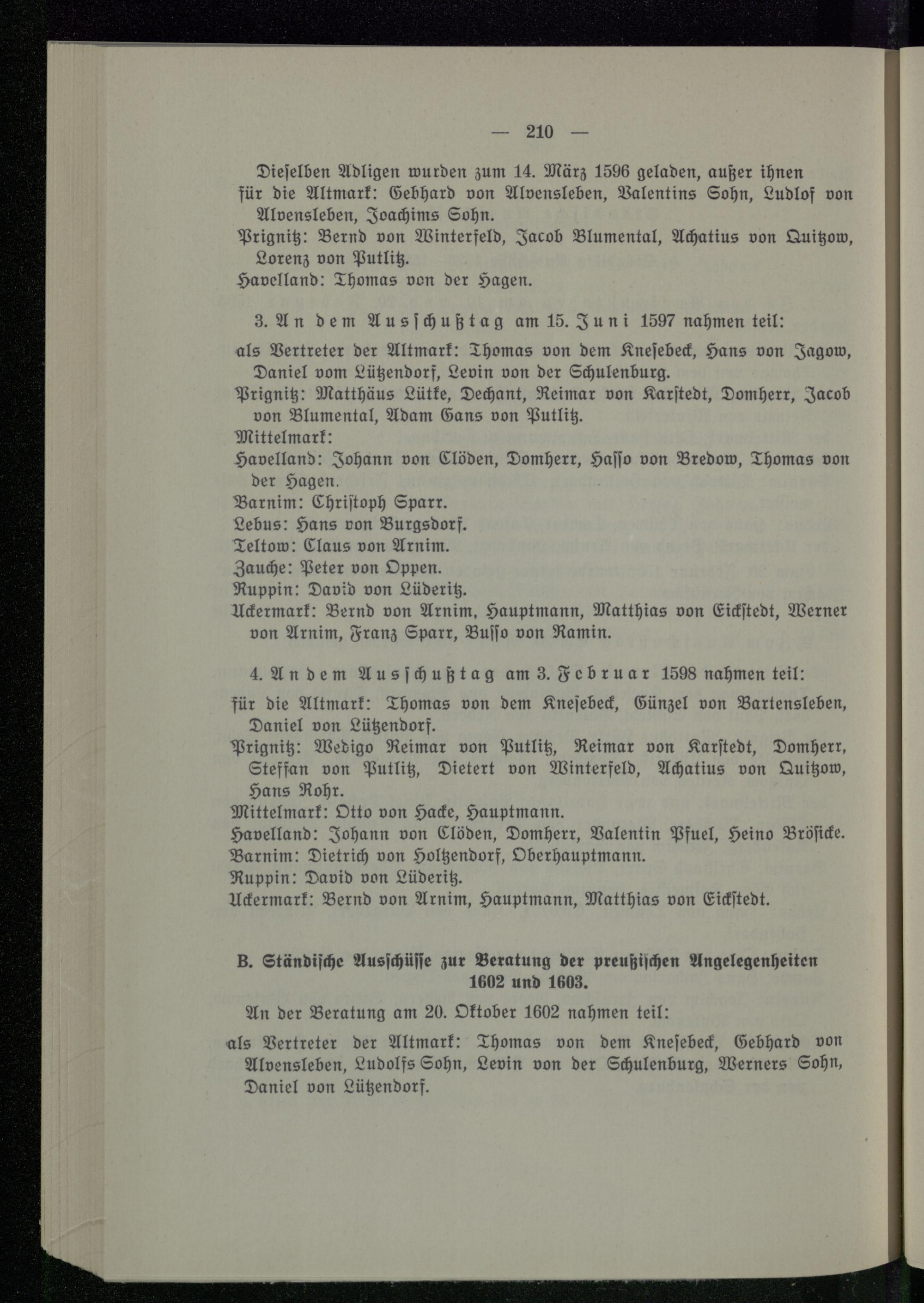 B. Ständische Ausschüsse zur Beratung der preußischen Angelegenheiten 1602 und 1603.
