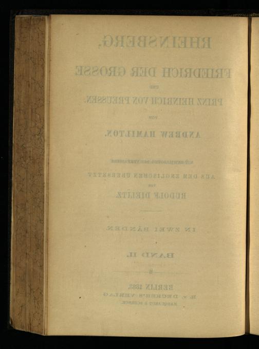Rheinsberg, Friedrich der Grosse und Prinz Heinrich von Preussen : in 2 Bänden / von Andrew Hamilton. Mit Bewilligung des Verf. aus d. Engl. übers. von Rudolf Dielitz