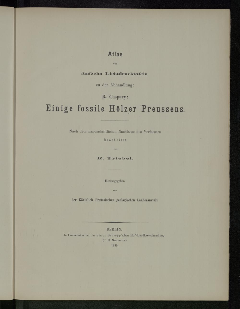 Einige fossile Hölzer Preussens / R. Caspary. Nach dem handschriftl. Nachlasse des Verf. bearb. von R. Triebel