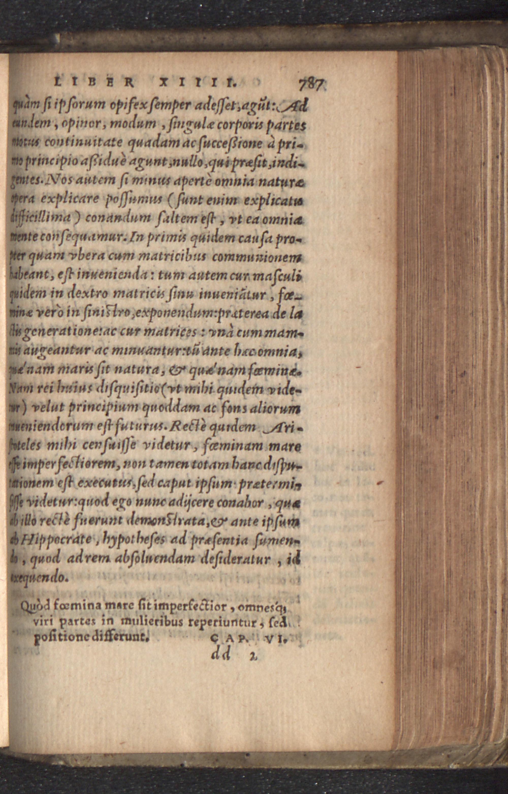 Quòd foemina mare sit imperfectior, omnesq; viri partes in mulieribus reperiuntur,...