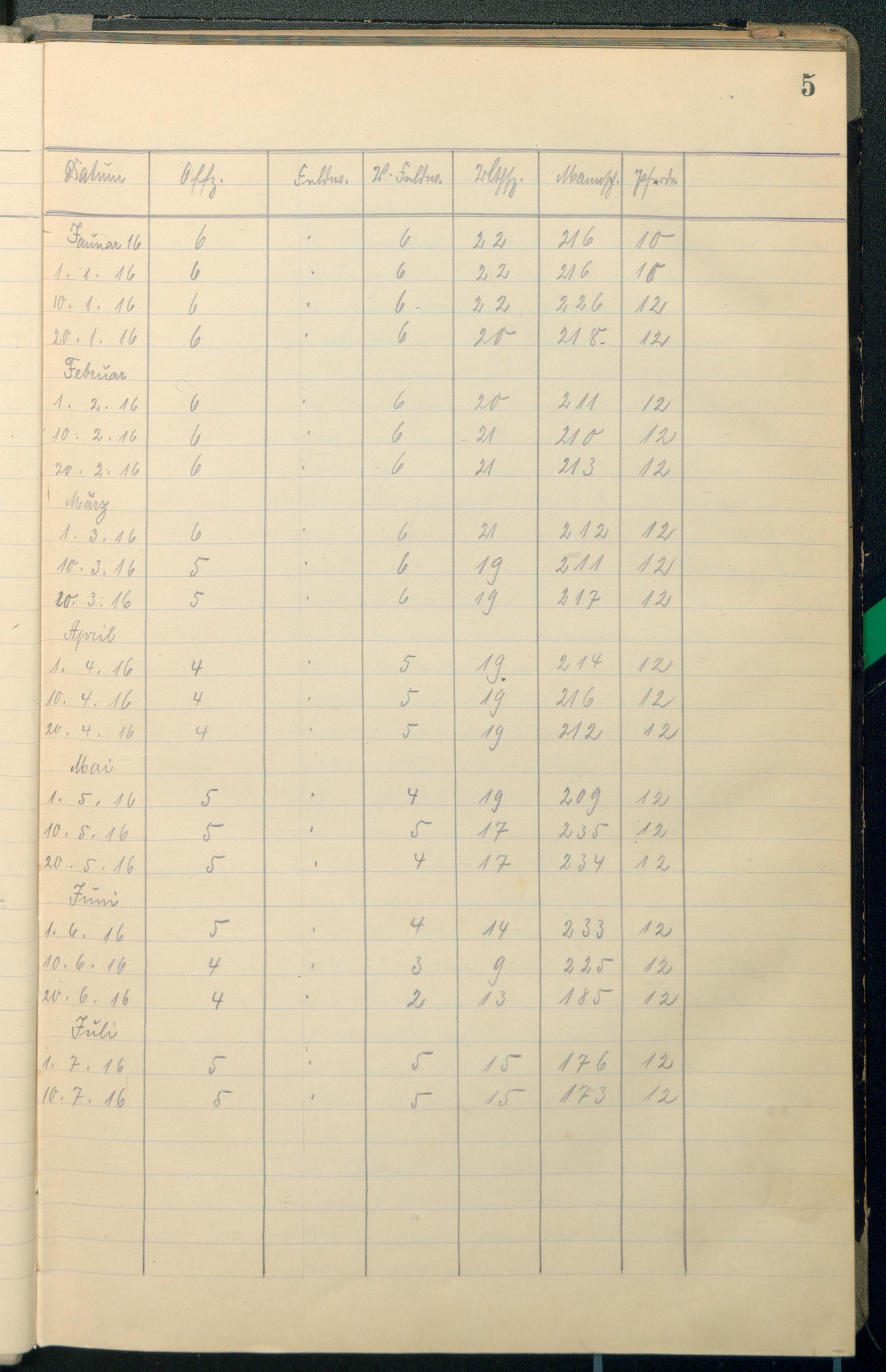 Verpflegungsstärken.