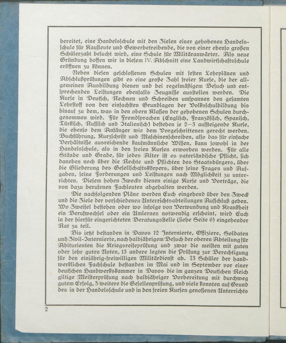 Die Ausbildung der deutschen Internierten in der Region Davos