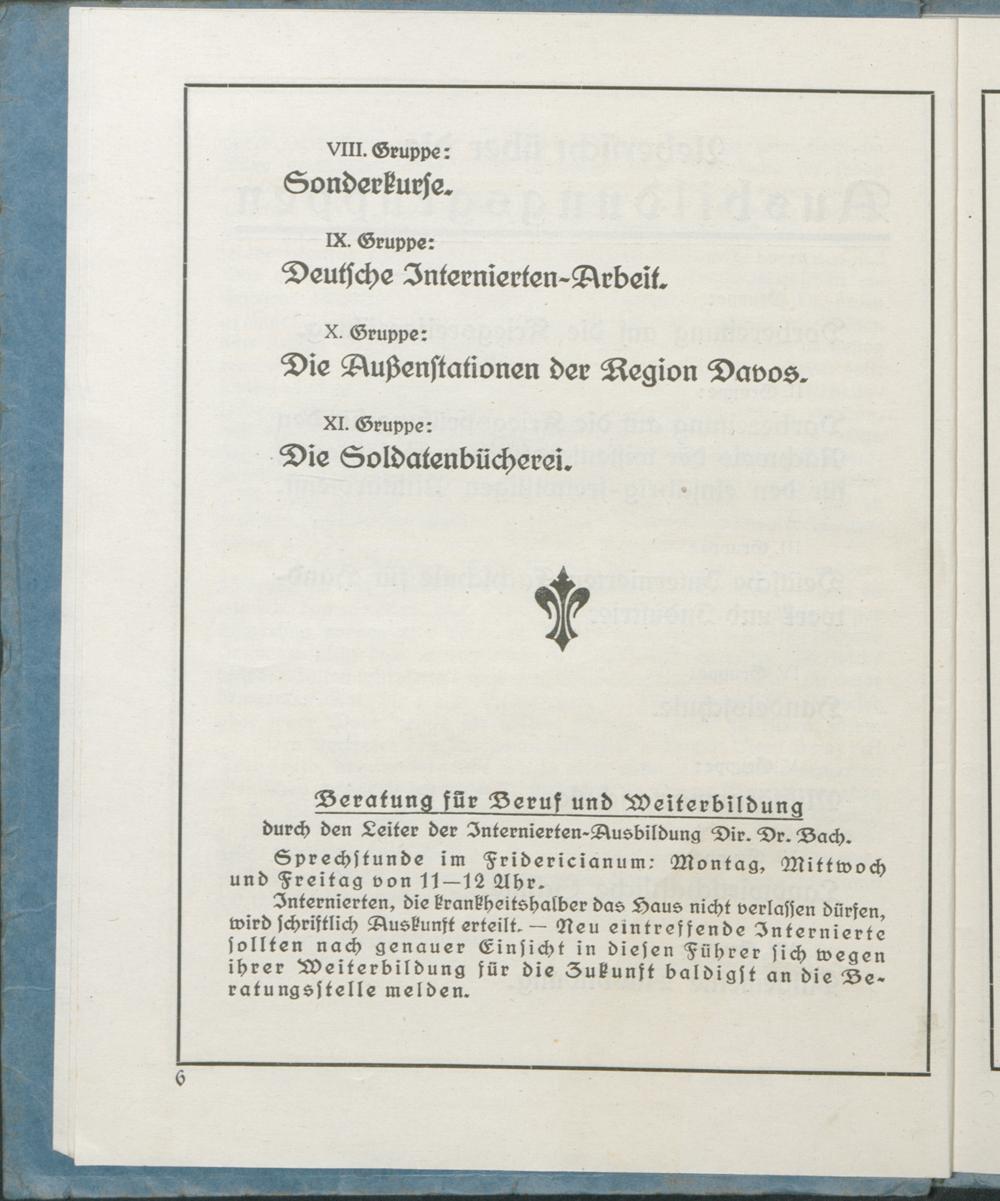 Die Ausbildung der deutschen Internierten in der Region Davos : ein Ratgeber für die Fortbildung ; IV. Unterrichtsperiode / hrsg. von [Hugo] Bach