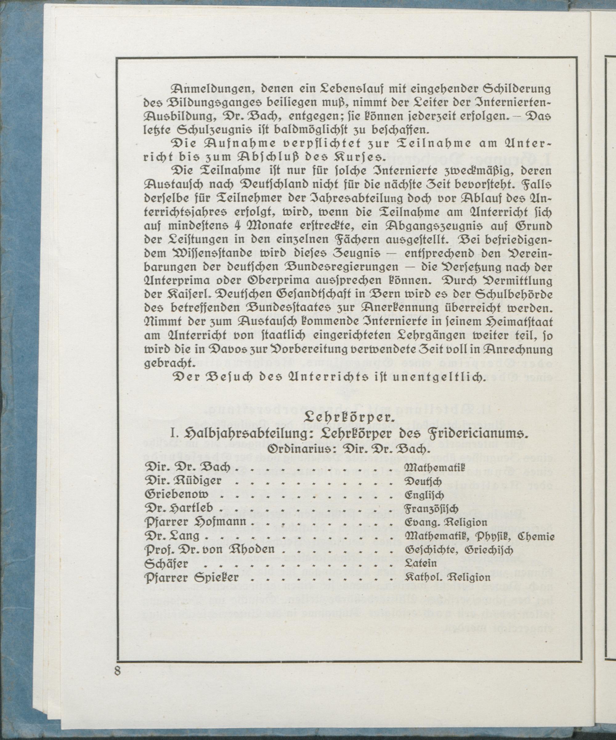 Die Ausbildung der deutschen Internierten in der Region Davos : ein Ratgeber für die Fortbildung ; IV. Unterrichtsperiode / hrsg. von [Hugo] Bach