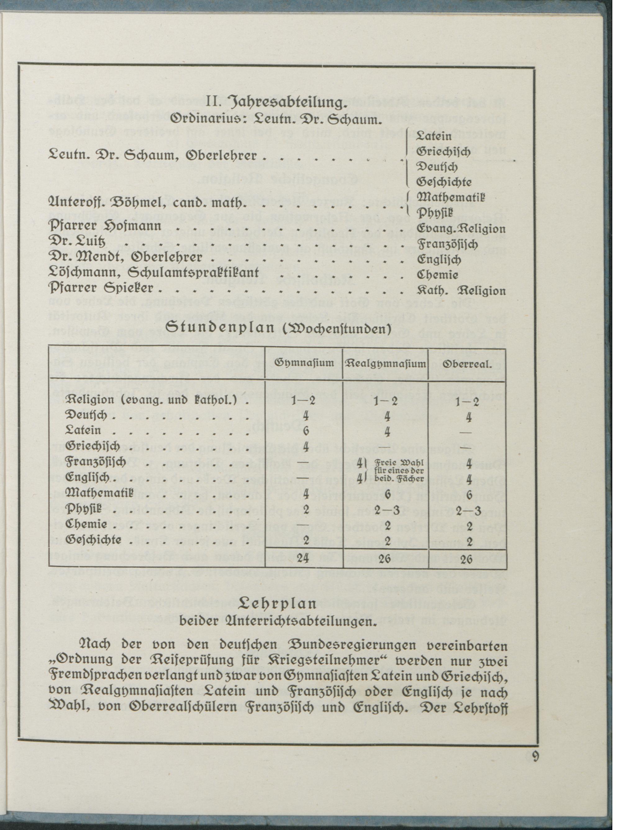 II. Gruppe: Vorbereitung auf die Kriegsprüfung für den Nachweis der wissenschaftlichen Befähigung für den einjährig-freiwilligen Militärdienst.