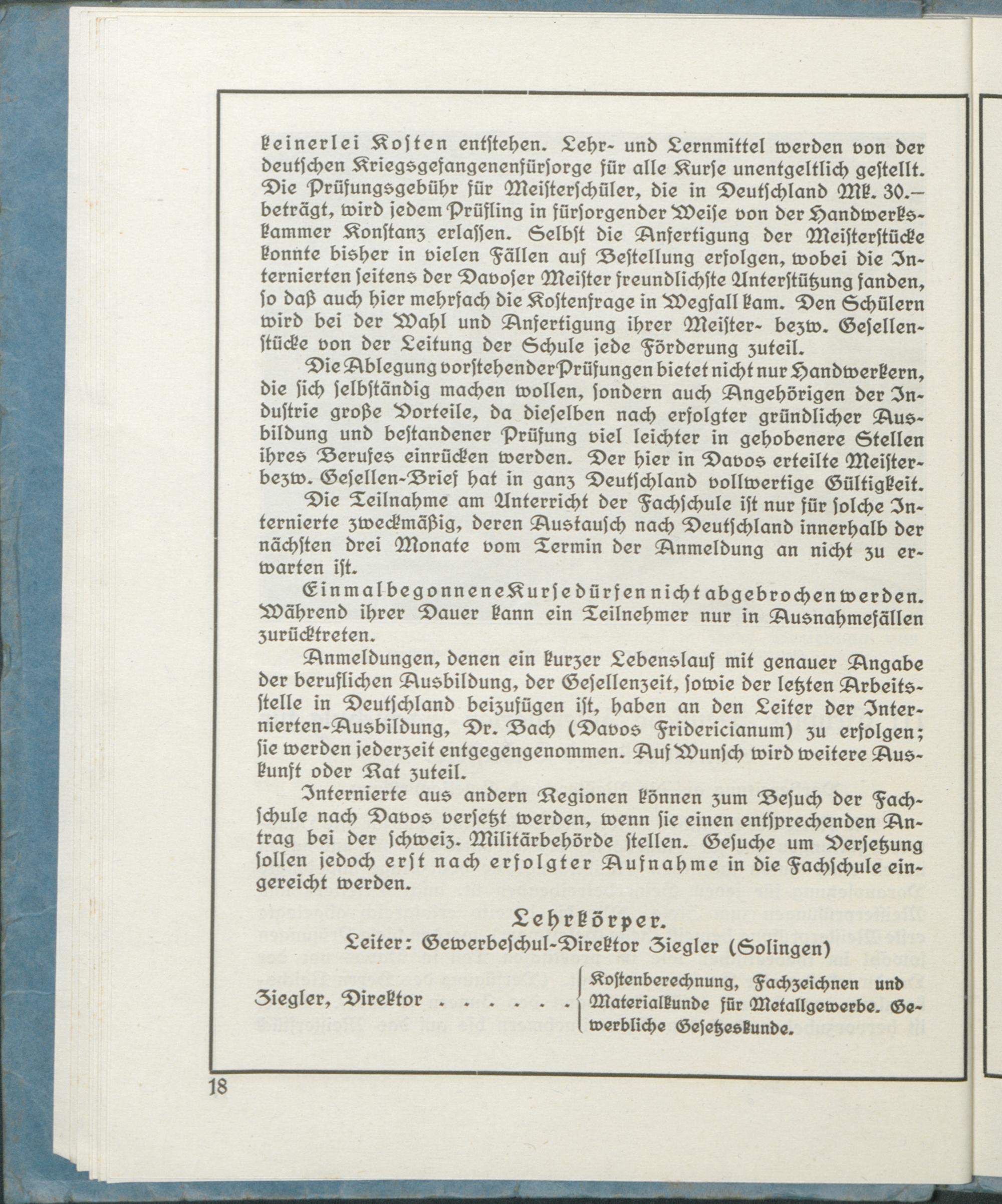 Die Ausbildung der deutschen Internierten in der Region Davos : ein Ratgeber für die Fortbildung ; IV. Unterrichtsperiode / hrsg. von [Hugo] Bach