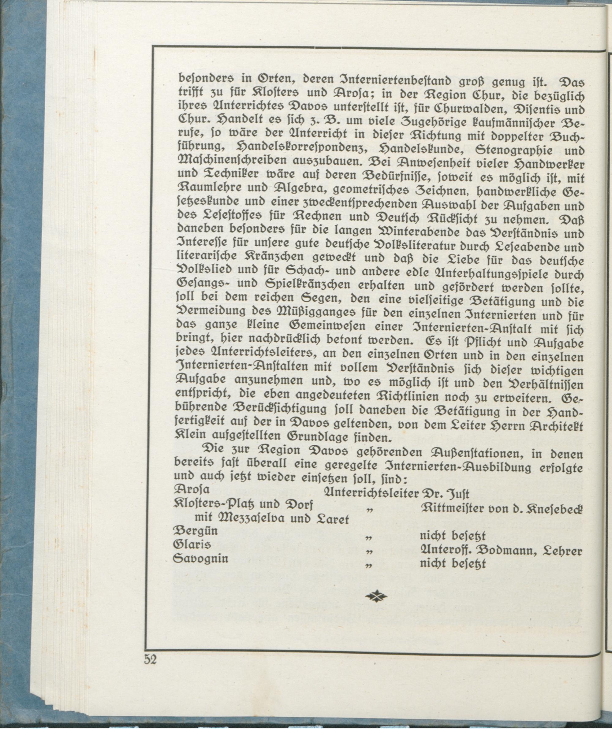Die Ausbildung der deutschen Internierten in der Region Davos
