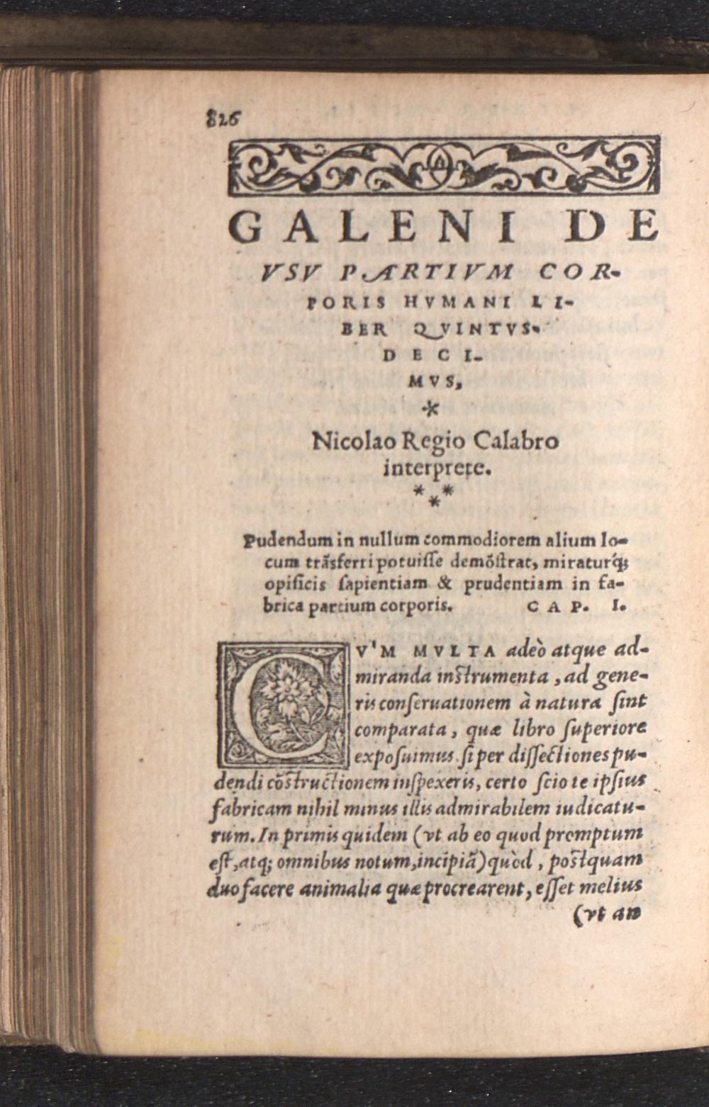 Cl. Gal. De Vsv Partivm Corporis Hvmani Libri XVII. / Nicolao Regio Calabre interprete, ex plurium Græcorum exemplarium collatione castigatiores quàm vnquam aliâs ...