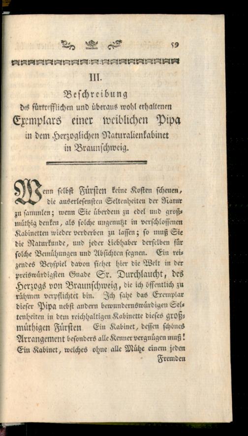 ... Philipp Fermins Abhandlungen von der Surinamischen Kröte oder Pipa, und dem völlig entdeckten Geheimniß ihrer Erzeugung, aus dem Französischen übersetzt, und mit der Beschreibung eines sehr schönen Exemplars des Herzogl. Naturalienkabinets in Braunschweig, sowie auch einer kurzen Geschichte der Pipa, begleitet von Jahann [!] August Ephraim Goeze : Mit vier Kupfertafeln