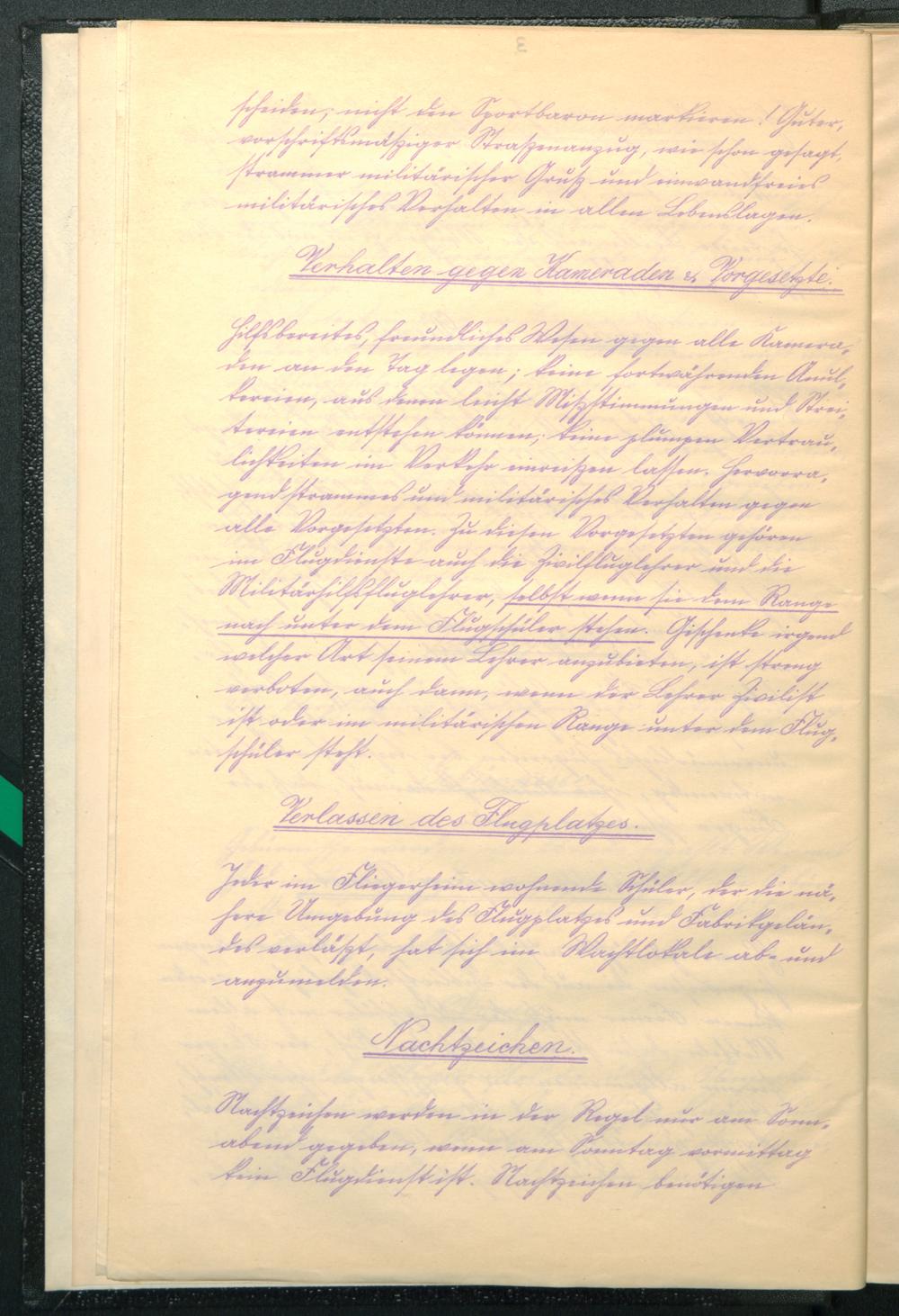 Dienstanweisung der Militär-Fliegerschule Leipzig-Lindenthal / gez.: Meyer