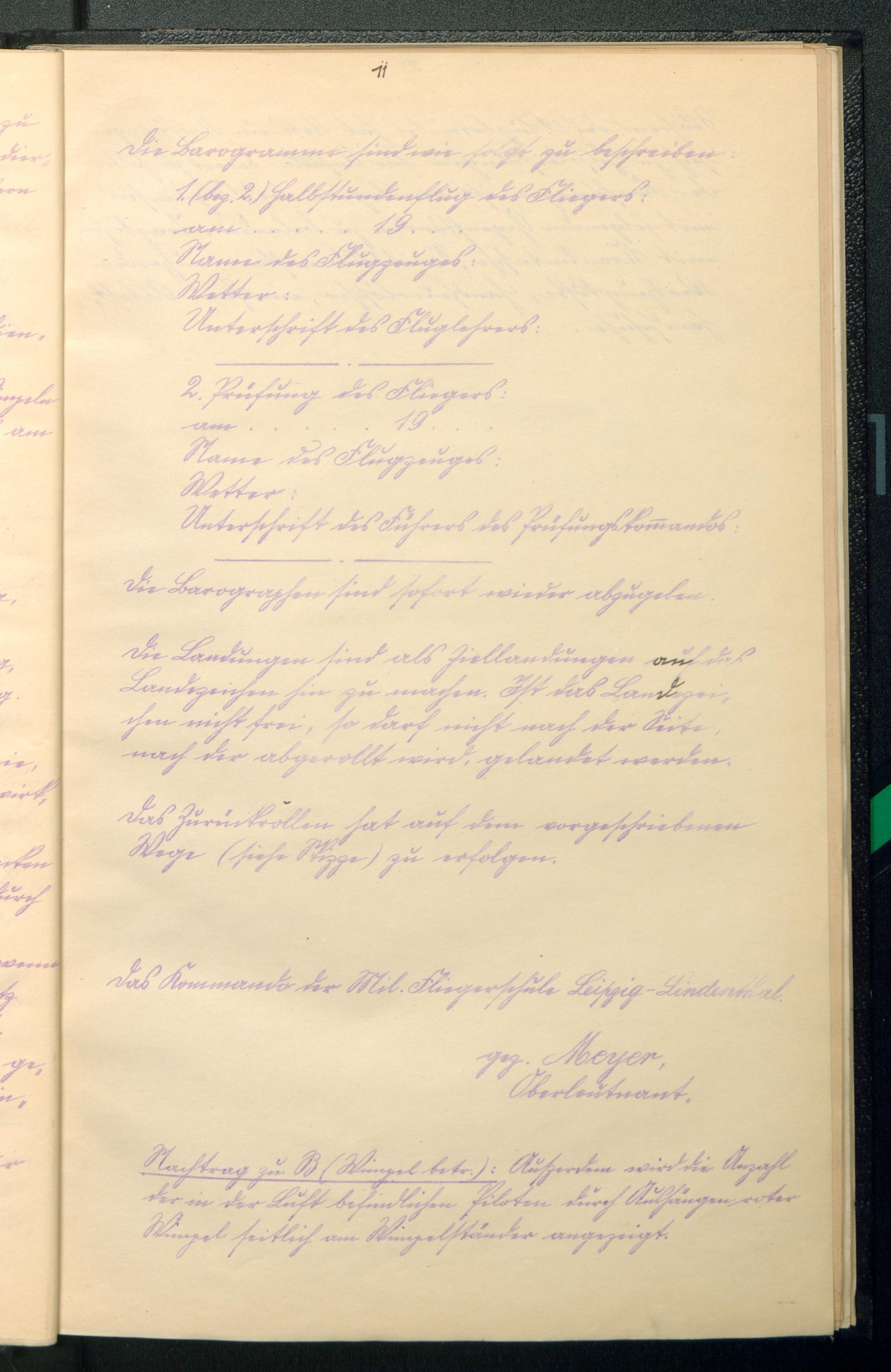 Dienstanweisung der Militär-Fliegerschule Leipzig-Lindenthal / gez.: Meyer