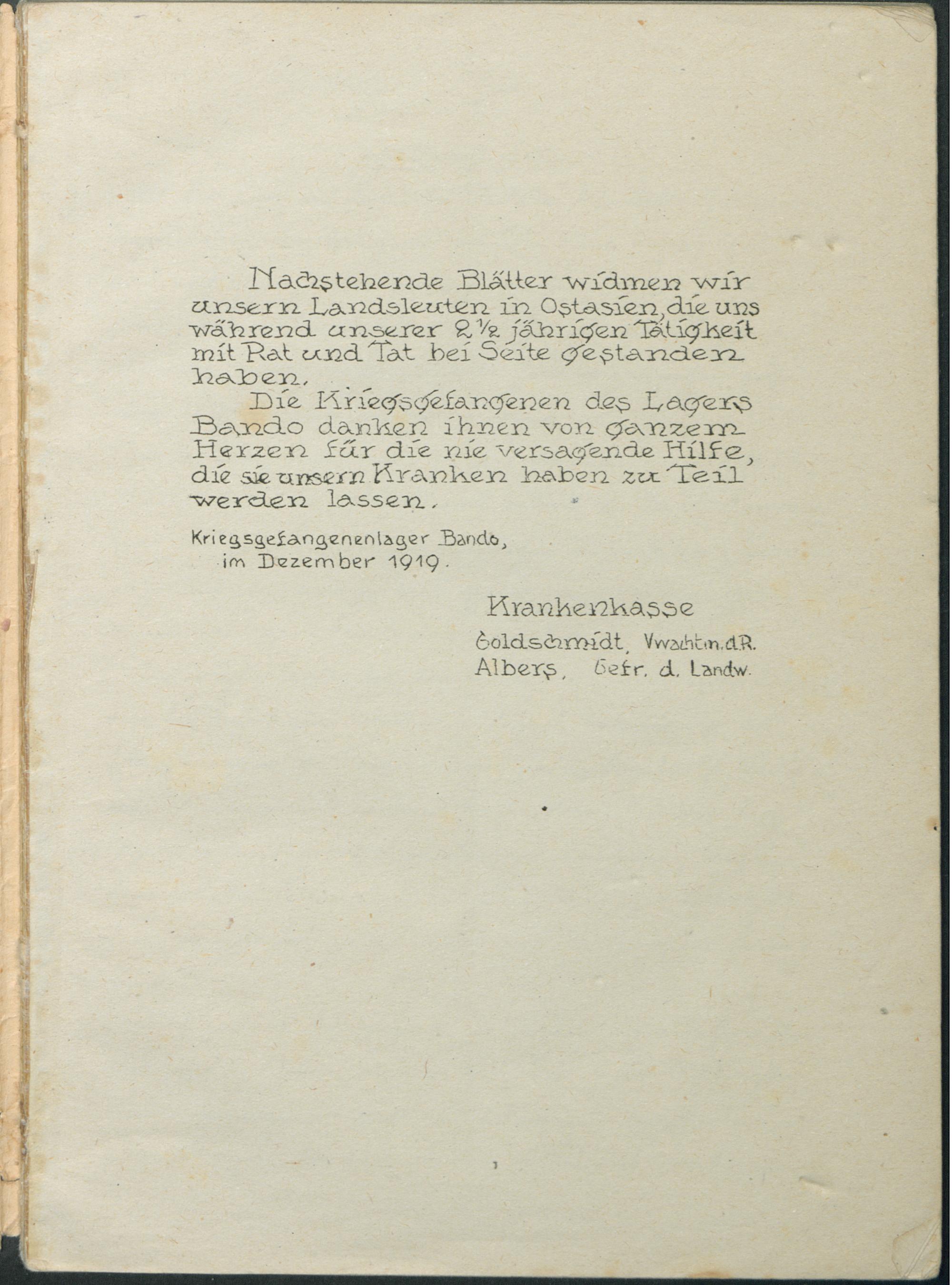 Krankenkasse Bando. Jahresbericht 1919.