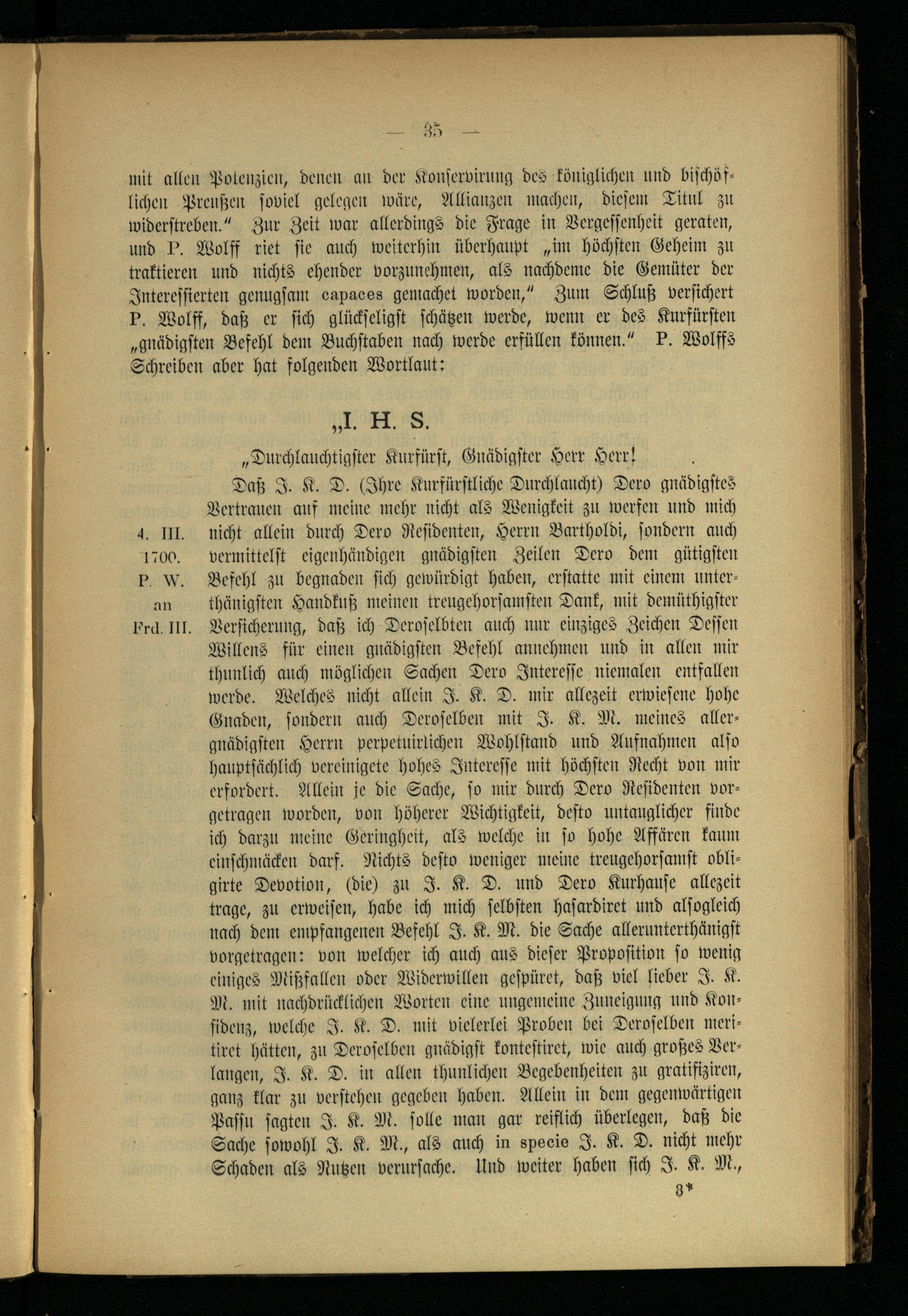 Der Anteil der Jesuiten an der Preußischen Königskrone von 1701 : nach den Akten des Geheimen Staatsarchivs ; eine Preußische und Deutsche Studie / von Nikolaus Thoemes. Mit e. Vorw. von Ernst Lieber