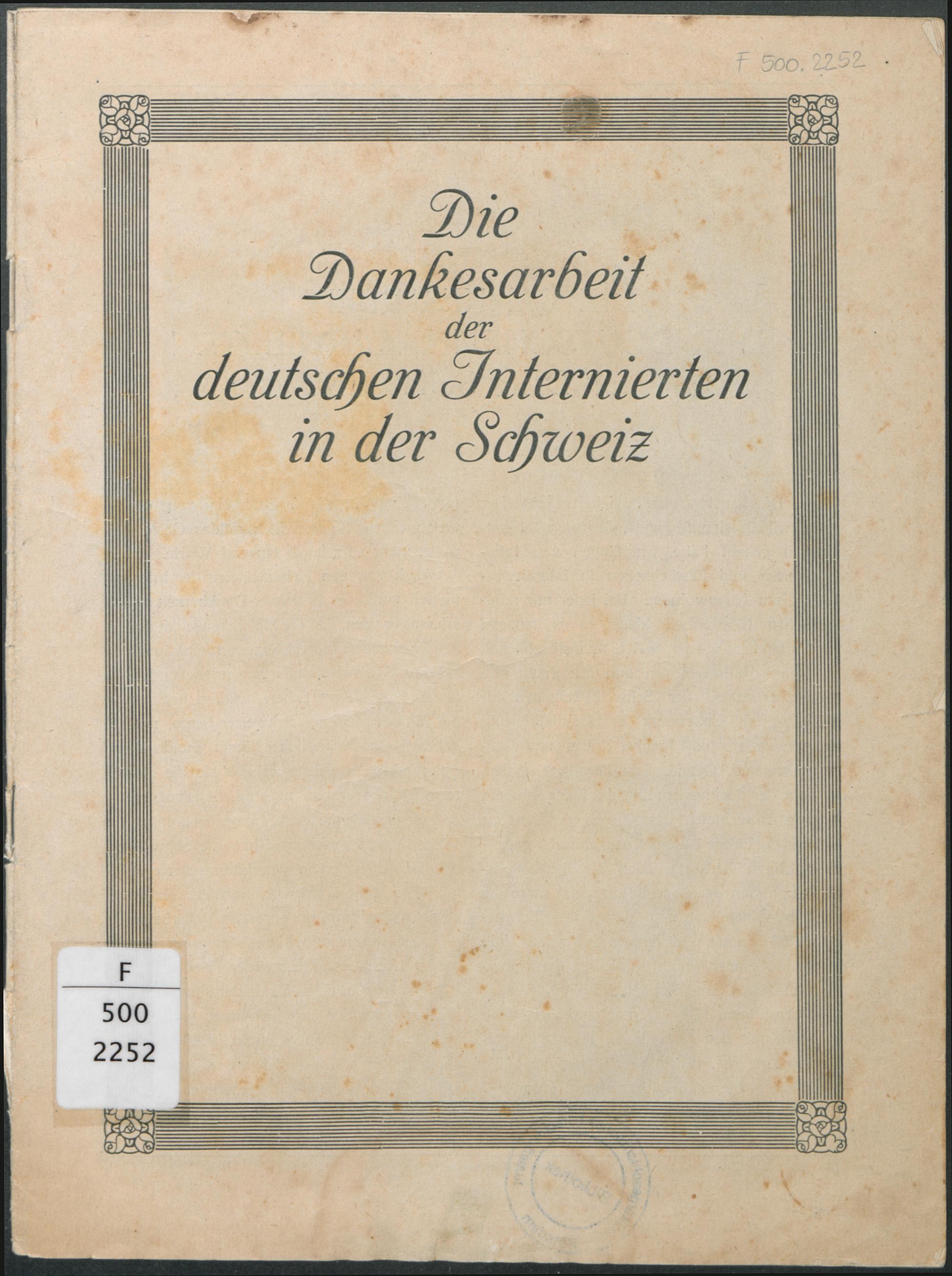 Die Dankesarbeit der Deutschen Internierten in der Schweiz.