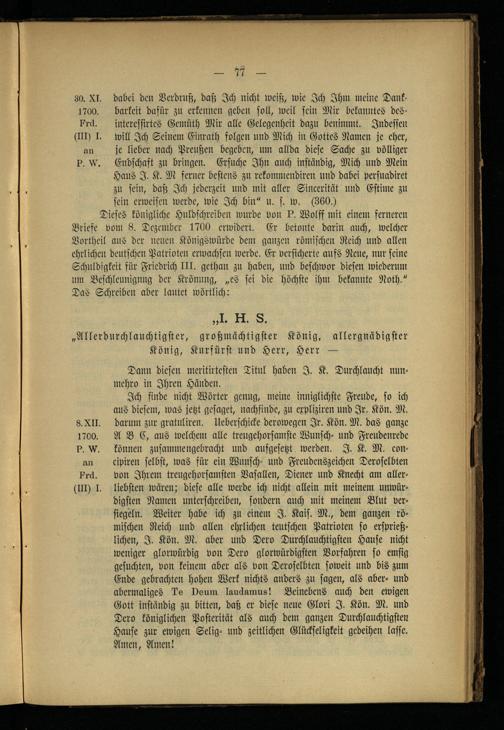 Der Anteil der Jesuiten an der Preußischen Königskrone von 1701 : nach den Akten des Geheimen Staatsarchivs ; eine Preußische und Deutsche Studie / von Nikolaus Thoemes. Mit e. Vorw. von Ernst Lieber