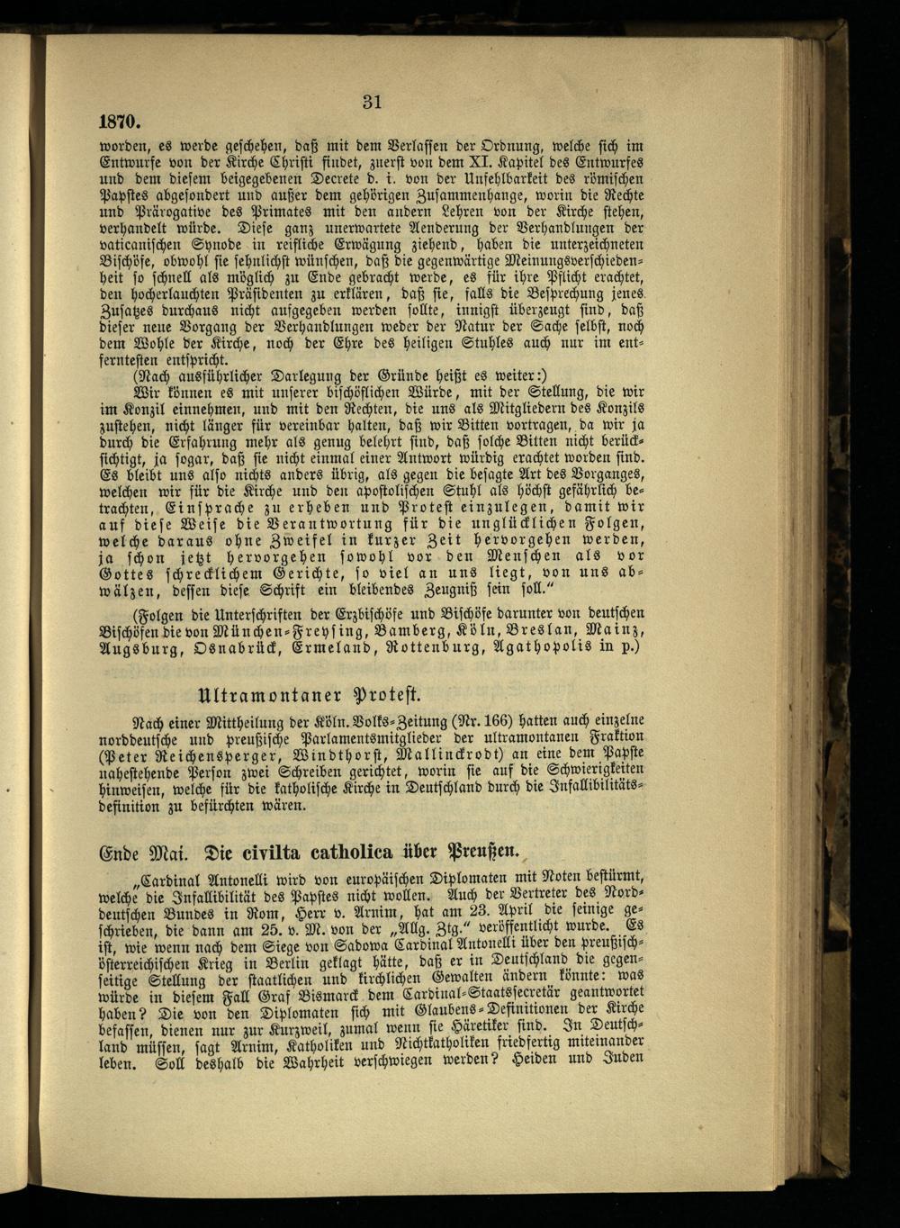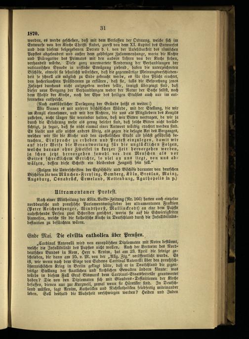 8. Die ersten Maigesetze und die weiteren kirchlichen Kämpfe.
