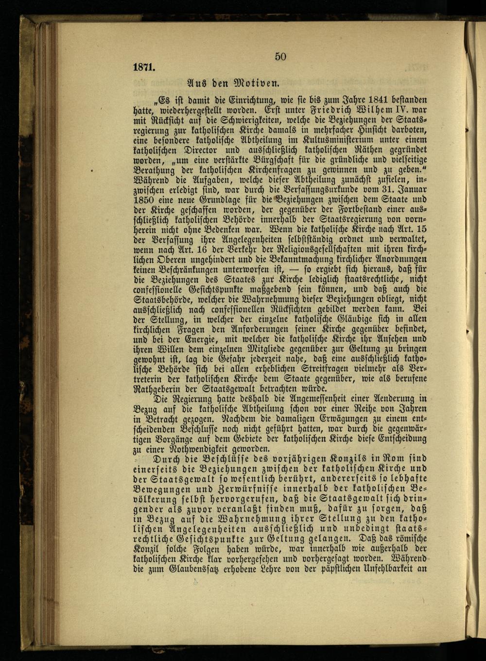 8. Die ersten Maigesetze und die weiteren kirchlichen Kämpfe.