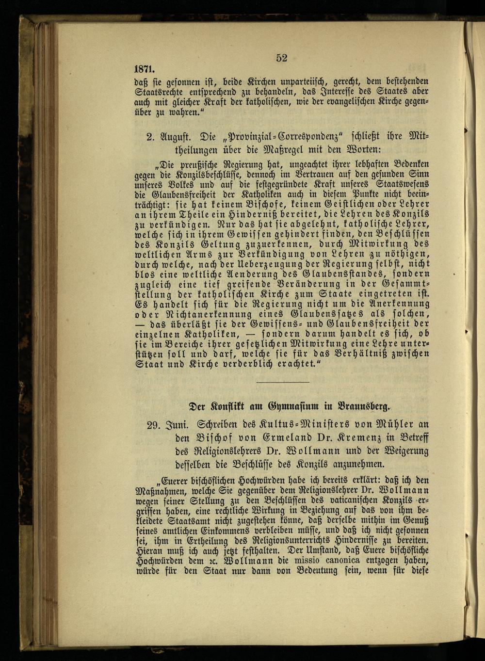 8. Die ersten Maigesetze und die weiteren kirchlichen Kämpfe.