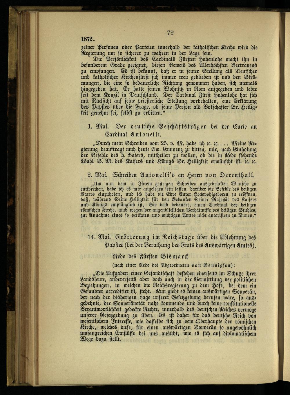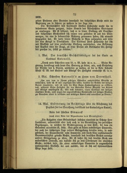 8. Die ersten Maigesetze und die weiteren kirchlichen Kämpfe.