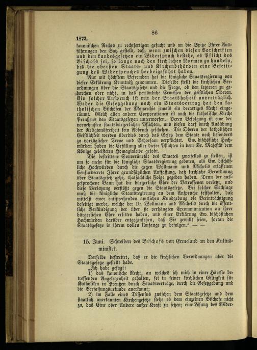 8. Die ersten Maigesetze und die weiteren kirchlichen Kämpfe.