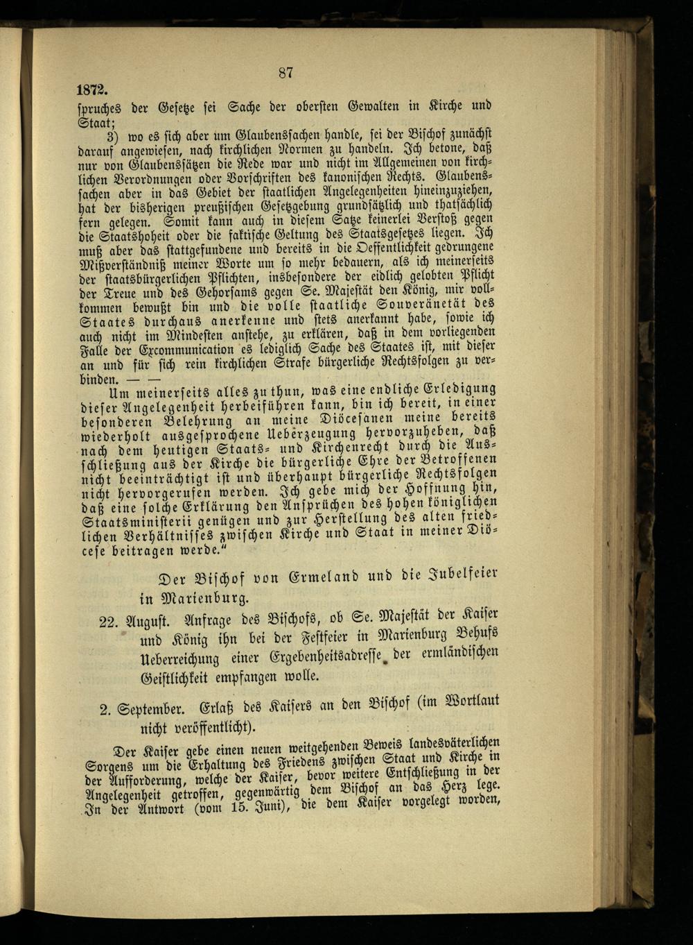 8. Die ersten Maigesetze und die weiteren kirchlichen Kämpfe.