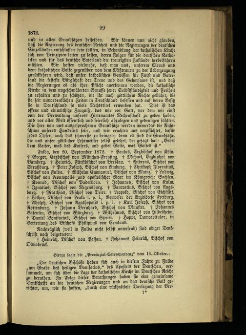 8. Die ersten Maigesetze und die weiteren kirchlichen Kämpfe.