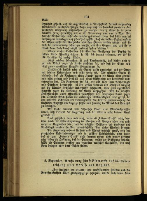 8. Die ersten Maigesetze und die weiteren kirchlichen Kämpfe.