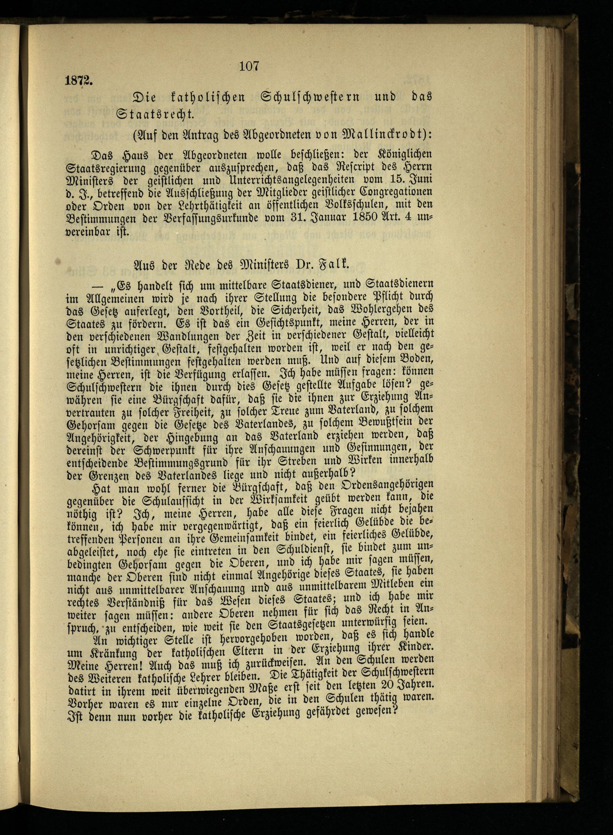8. Die ersten Maigesetze und die weiteren kirchlichen Kämpfe.