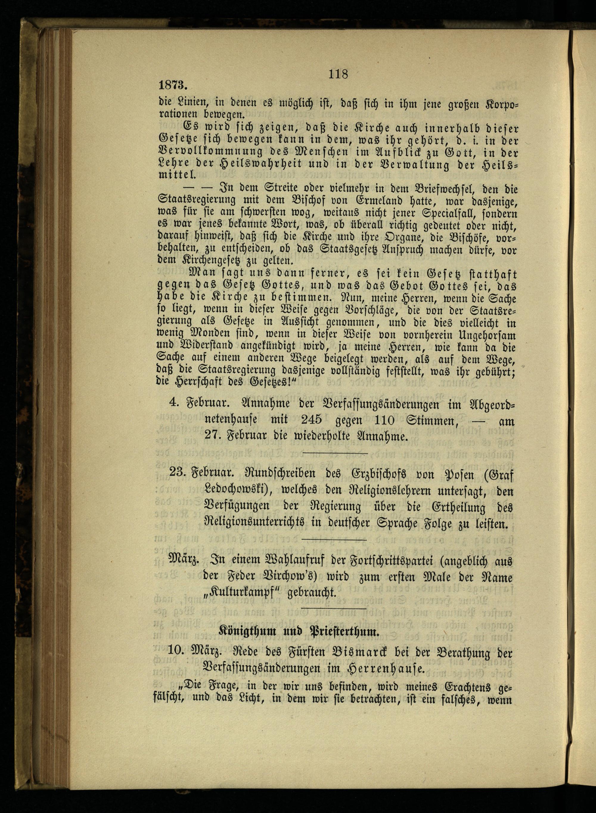 8. Die ersten Maigesetze und die weiteren kirchlichen Kämpfe.