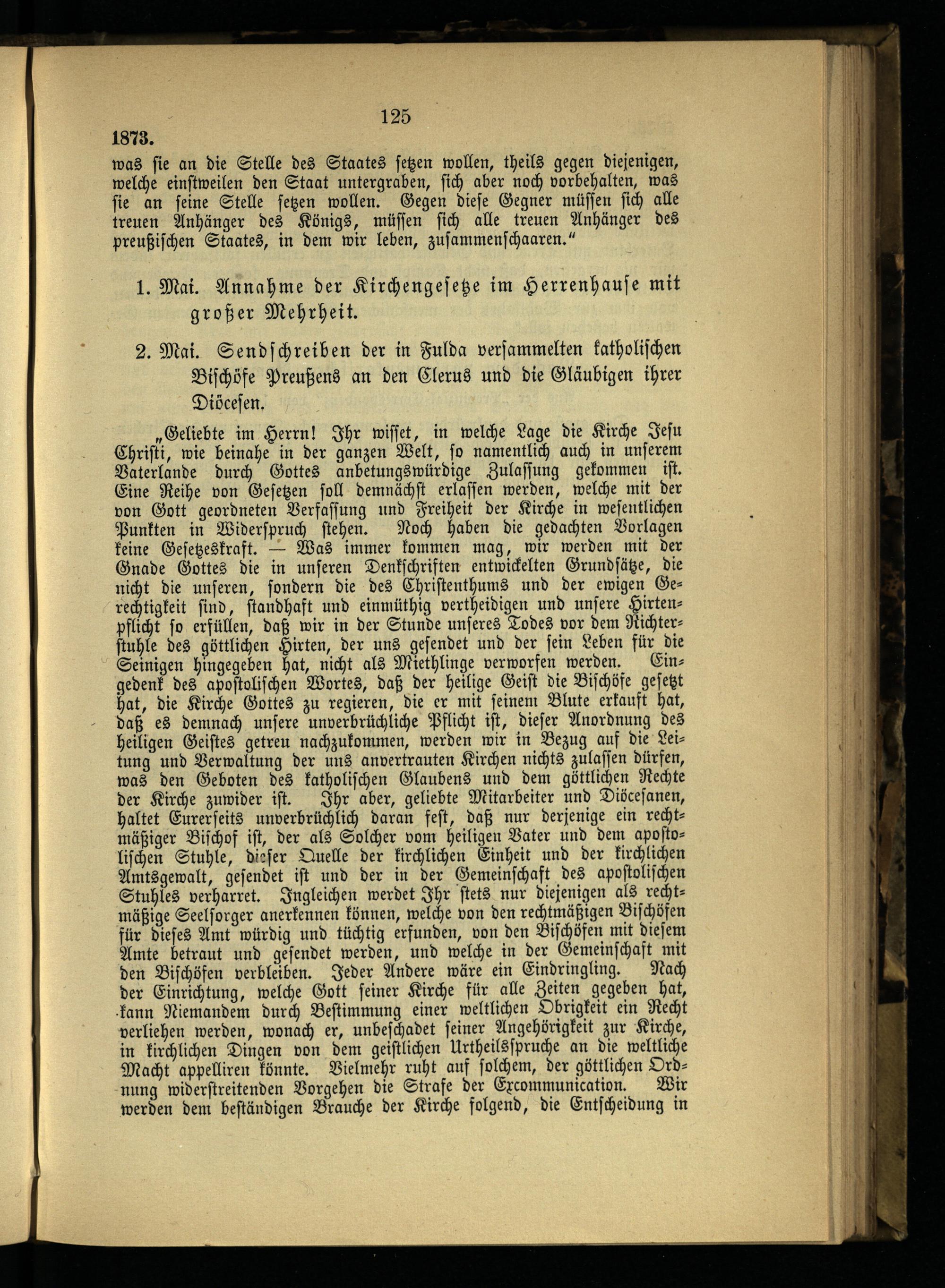 8. Die ersten Maigesetze und die weiteren kirchlichen Kämpfe.