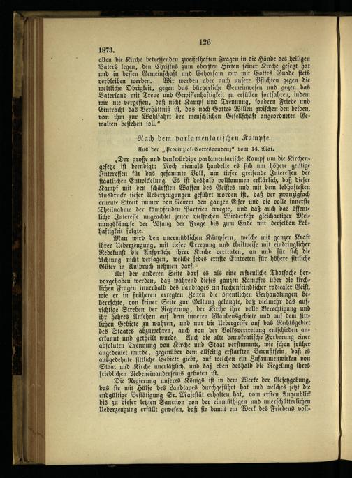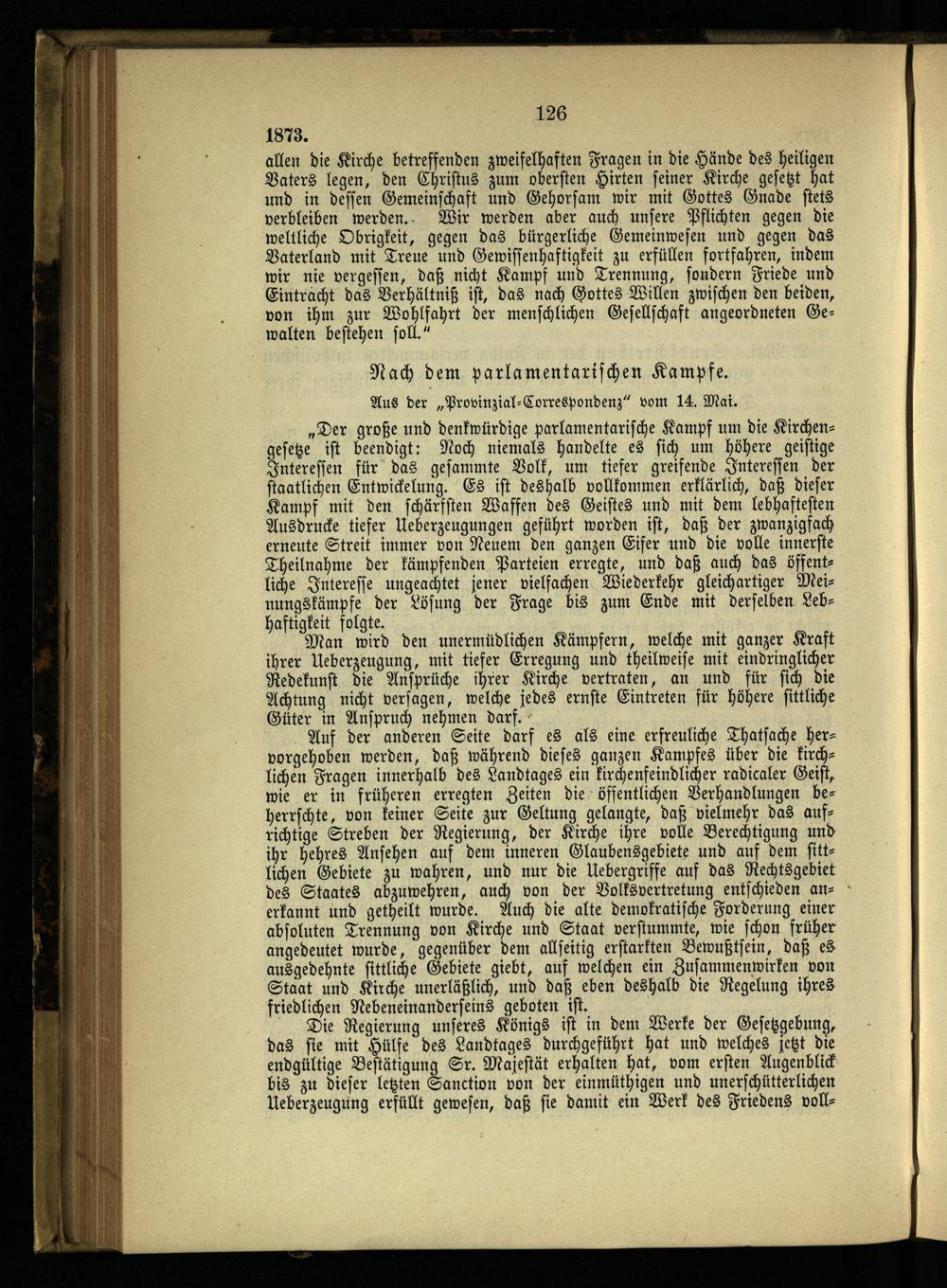 8. Die ersten Maigesetze und die weiteren kirchlichen Kämpfe.