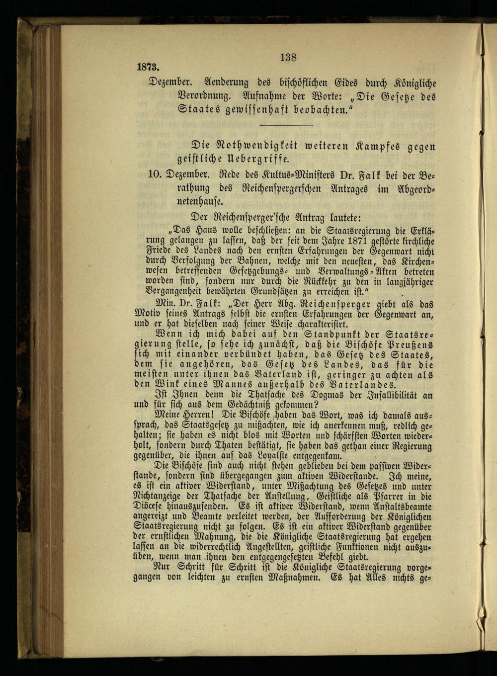 8. Die ersten Maigesetze und die weiteren kirchlichen Kämpfe.