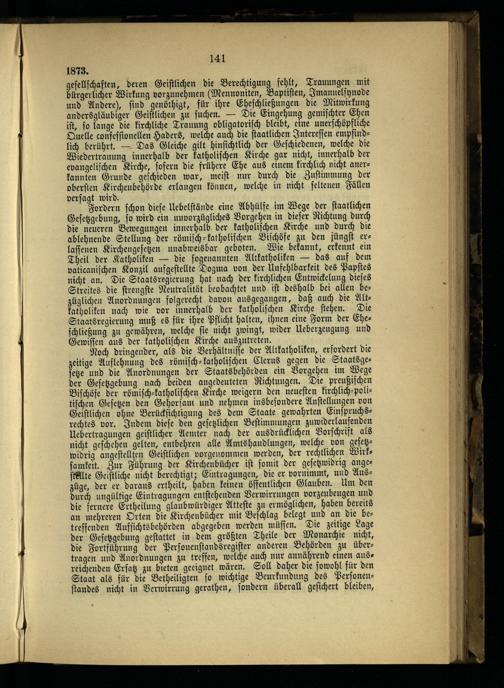 8. Die ersten Maigesetze und die weiteren kirchlichen Kämpfe.