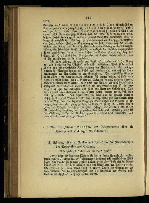 8. Die ersten Maigesetze und die weiteren kirchlichen Kämpfe.