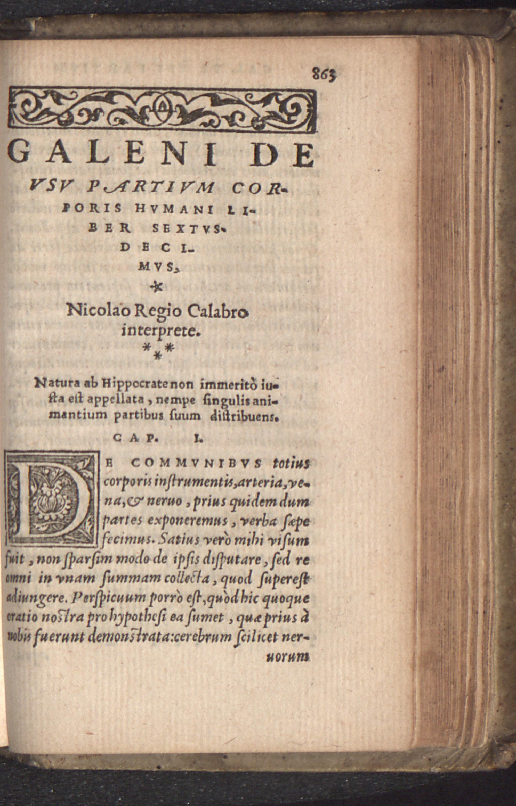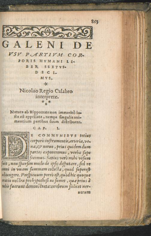 Cl. Gal. De Vsv Partivm Corporis Hvmani Libri XVII. / Nicolao Regio Calabre interprete, ex plurium Græcorum exemplarium collatione castigatiores quàm vnquam aliâs ...