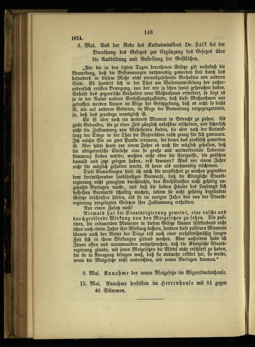 8. Die ersten Maigesetze und die weiteren kirchlichen Kämpfe.