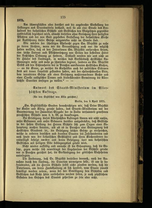 8. Die ersten Maigesetze und die weiteren kirchlichen Kämpfe.