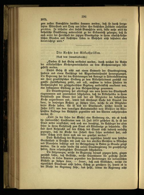 8. Die ersten Maigesetze und die weiteren kirchlichen Kämpfe.