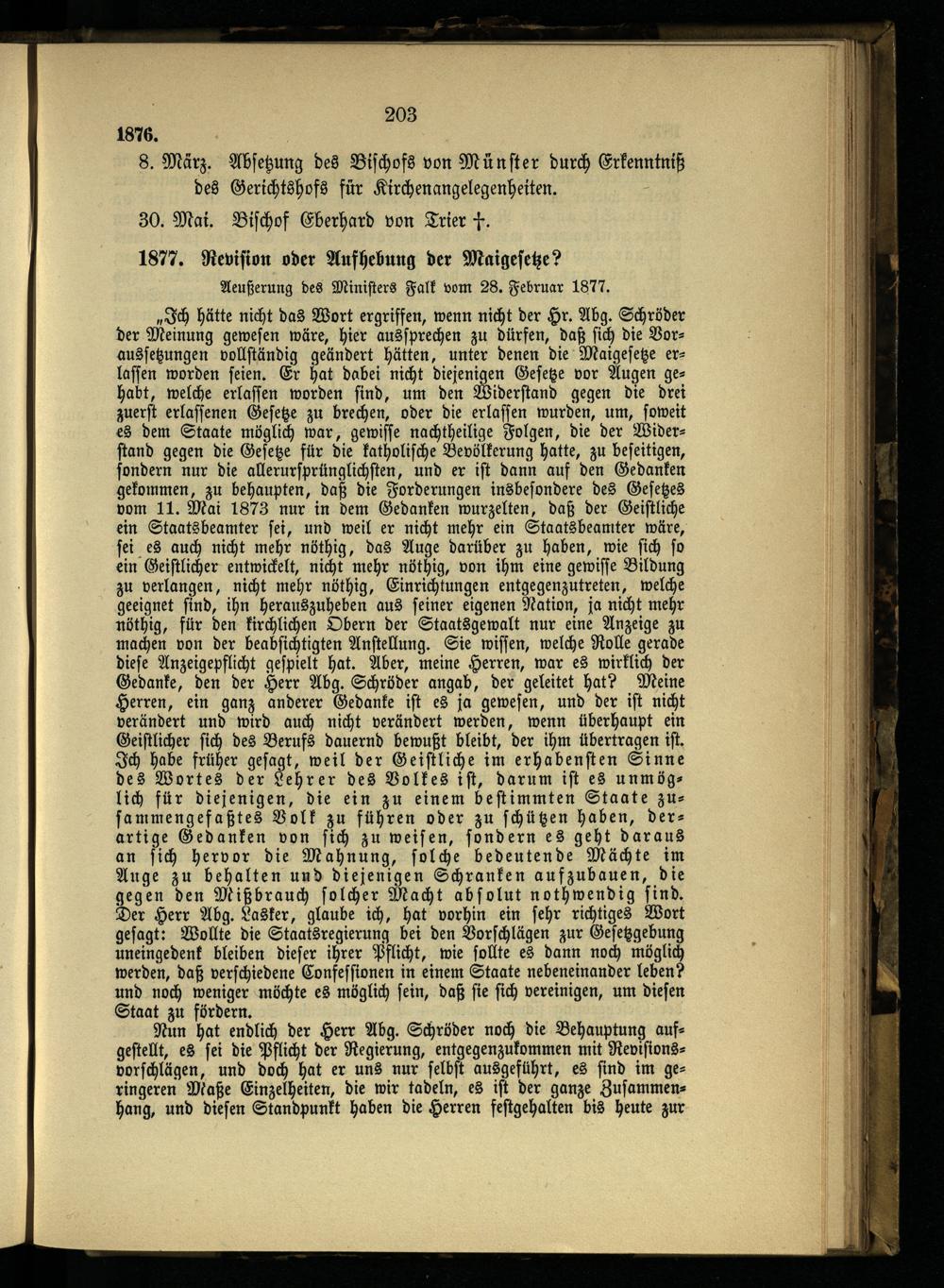 8. Die ersten Maigesetze und die weiteren kirchlichen Kämpfe.