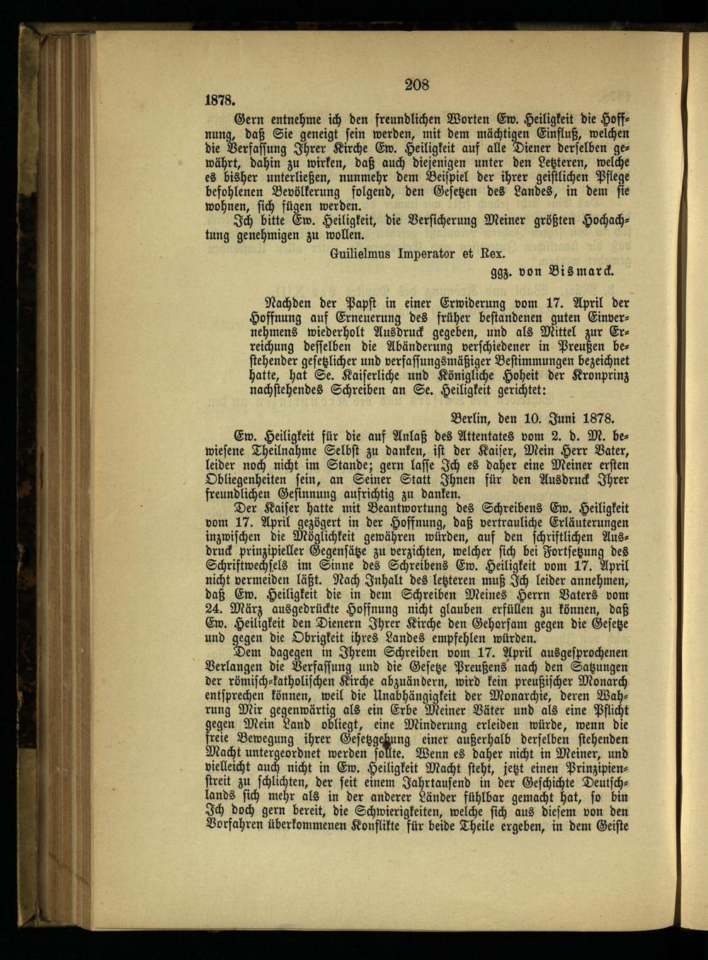 8. Die ersten Maigesetze und die weiteren kirchlichen Kämpfe.