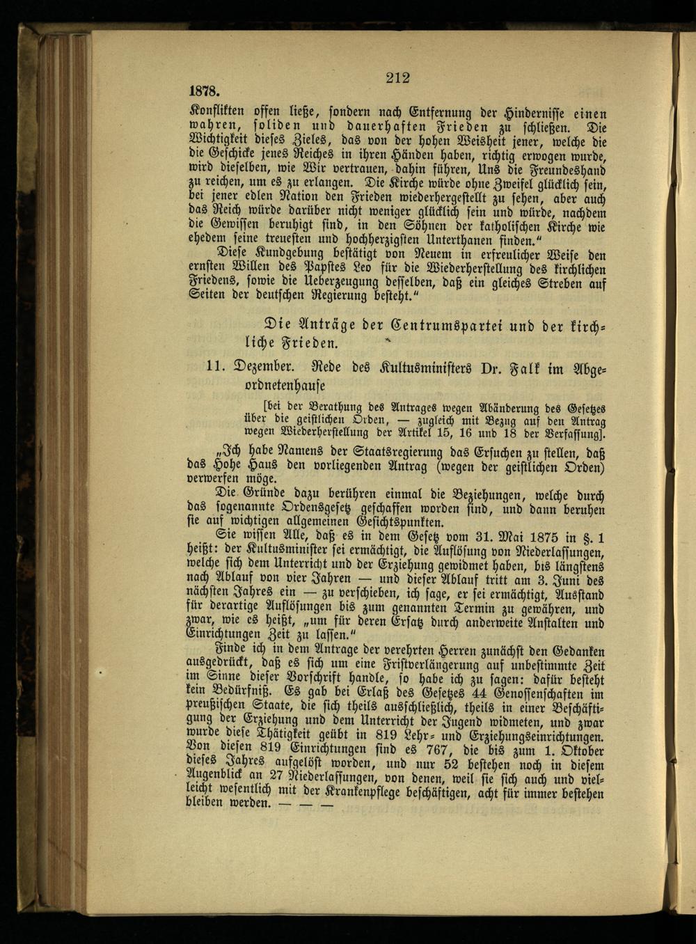 8. Die ersten Maigesetze und die weiteren kirchlichen Kämpfe.