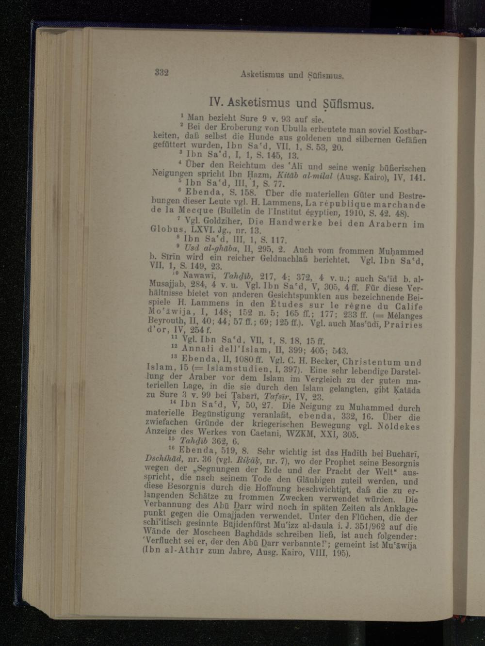 IV. Asketismus und Sufismus.