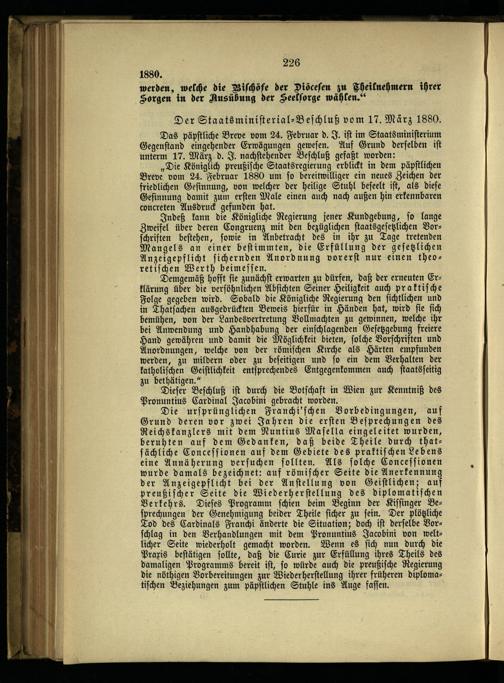 Geschichte des "Kulturkampfes" in Preußen : in Aktenstücken dargestellt ; mit einer Uebersicht / von Ludwig Hahn