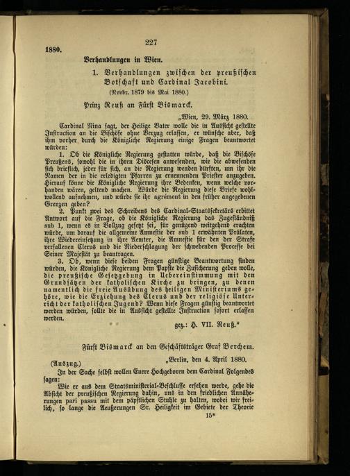 Geschichte des "Kulturkampfes" in Preußen : in Aktenstücken dargestellt ; mit einer Uebersicht / von Ludwig Hahn