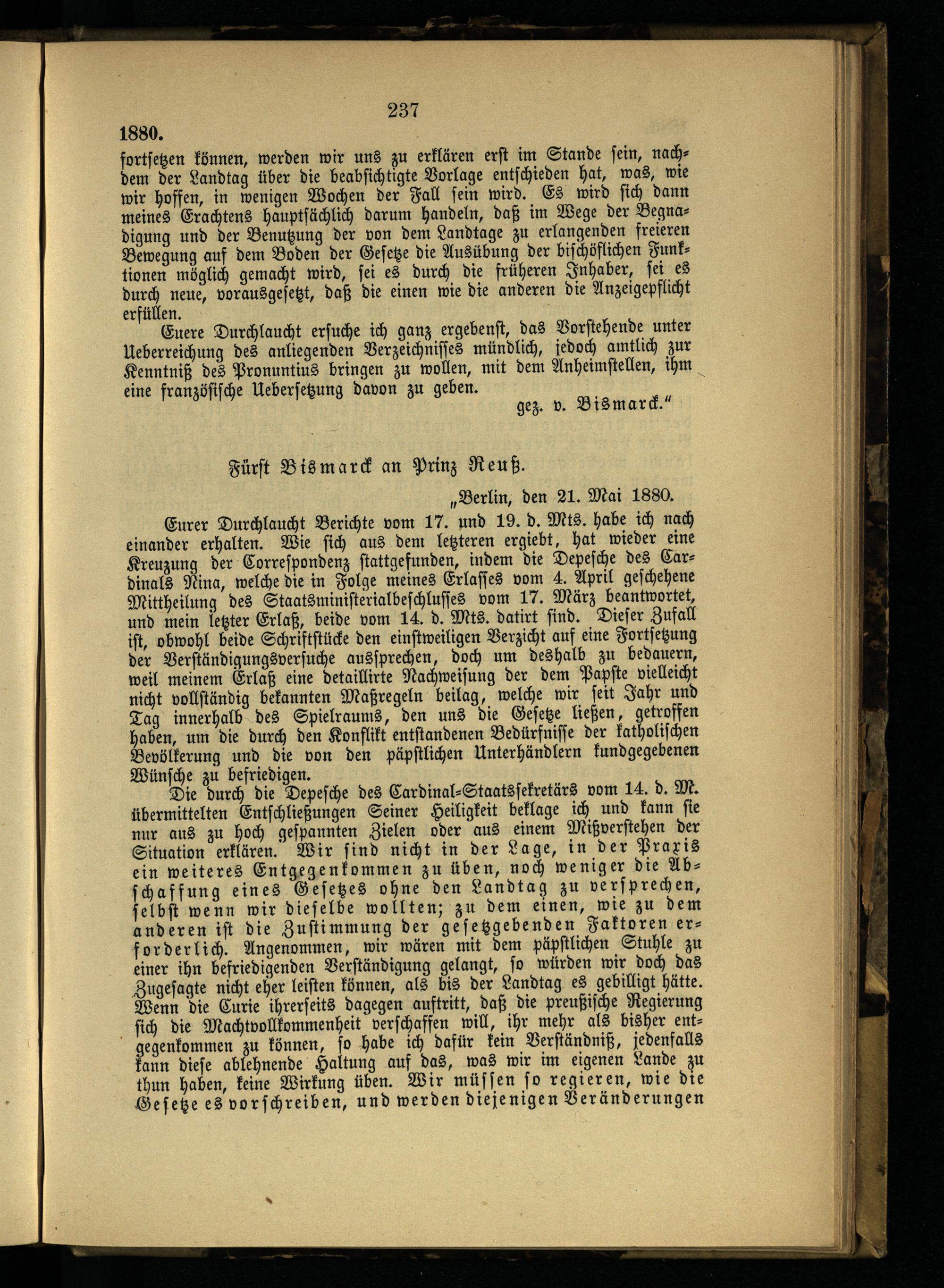 8. Die ersten Maigesetze und die weiteren kirchlichen Kämpfe.