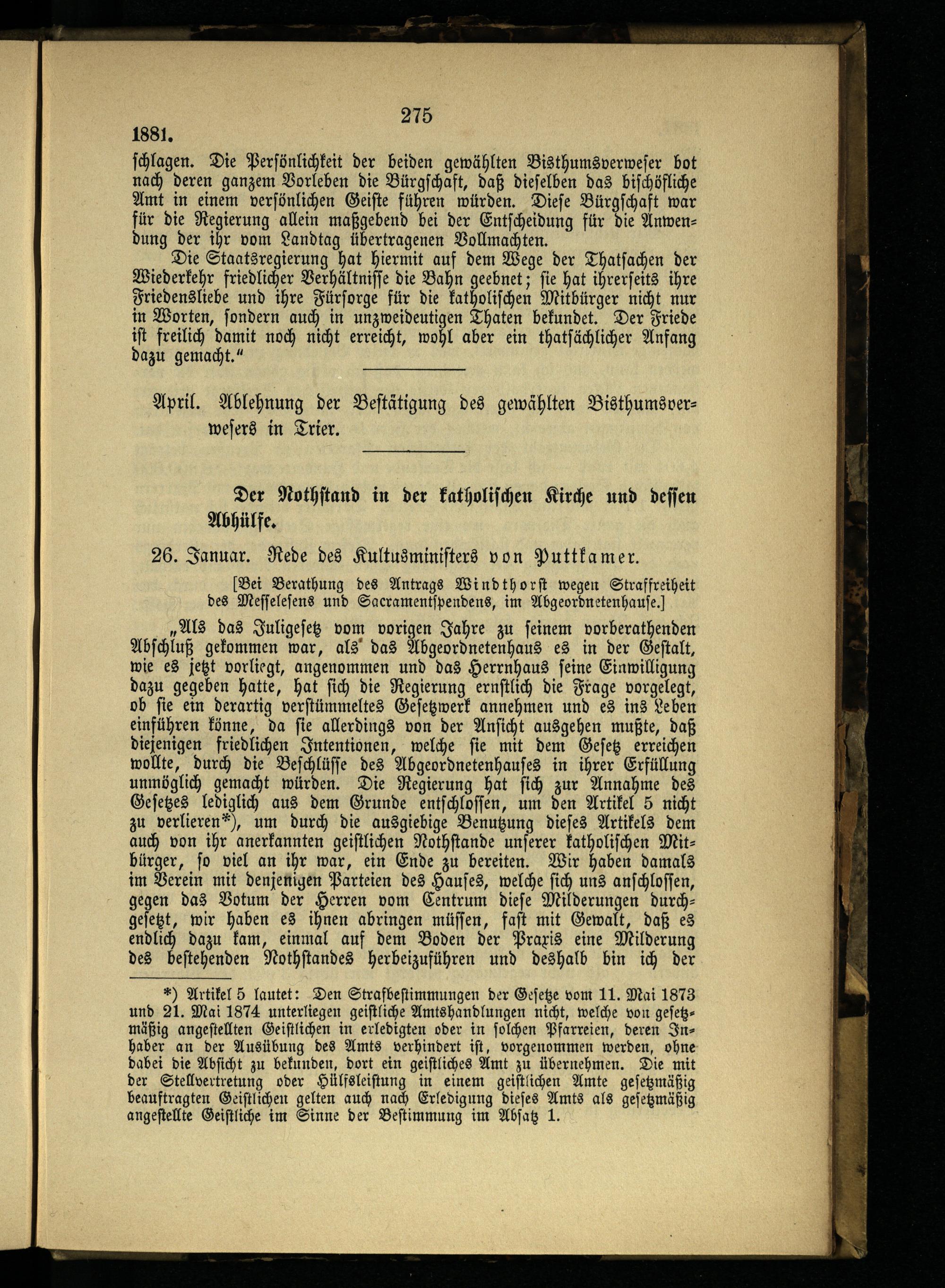 8. Die ersten Maigesetze und die weiteren kirchlichen Kämpfe.
