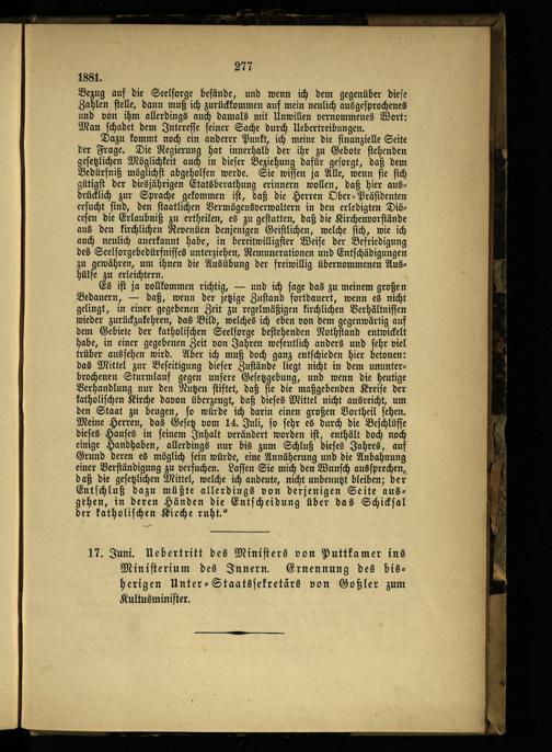 8. Die ersten Maigesetze und die weiteren kirchlichen Kämpfe.