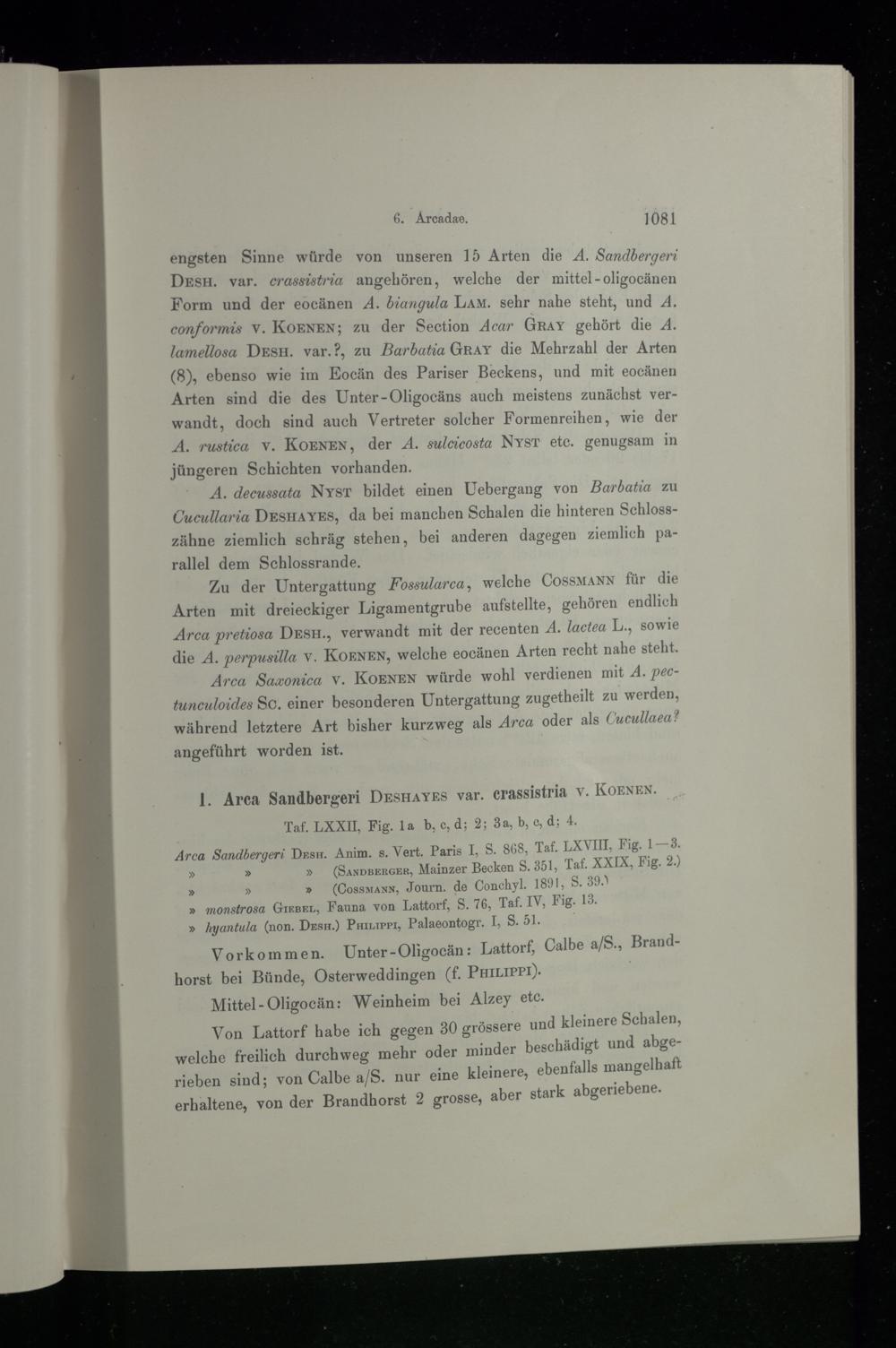 1. Arca Sandbergeri Deshayes var. crassistria v. Koenen.
