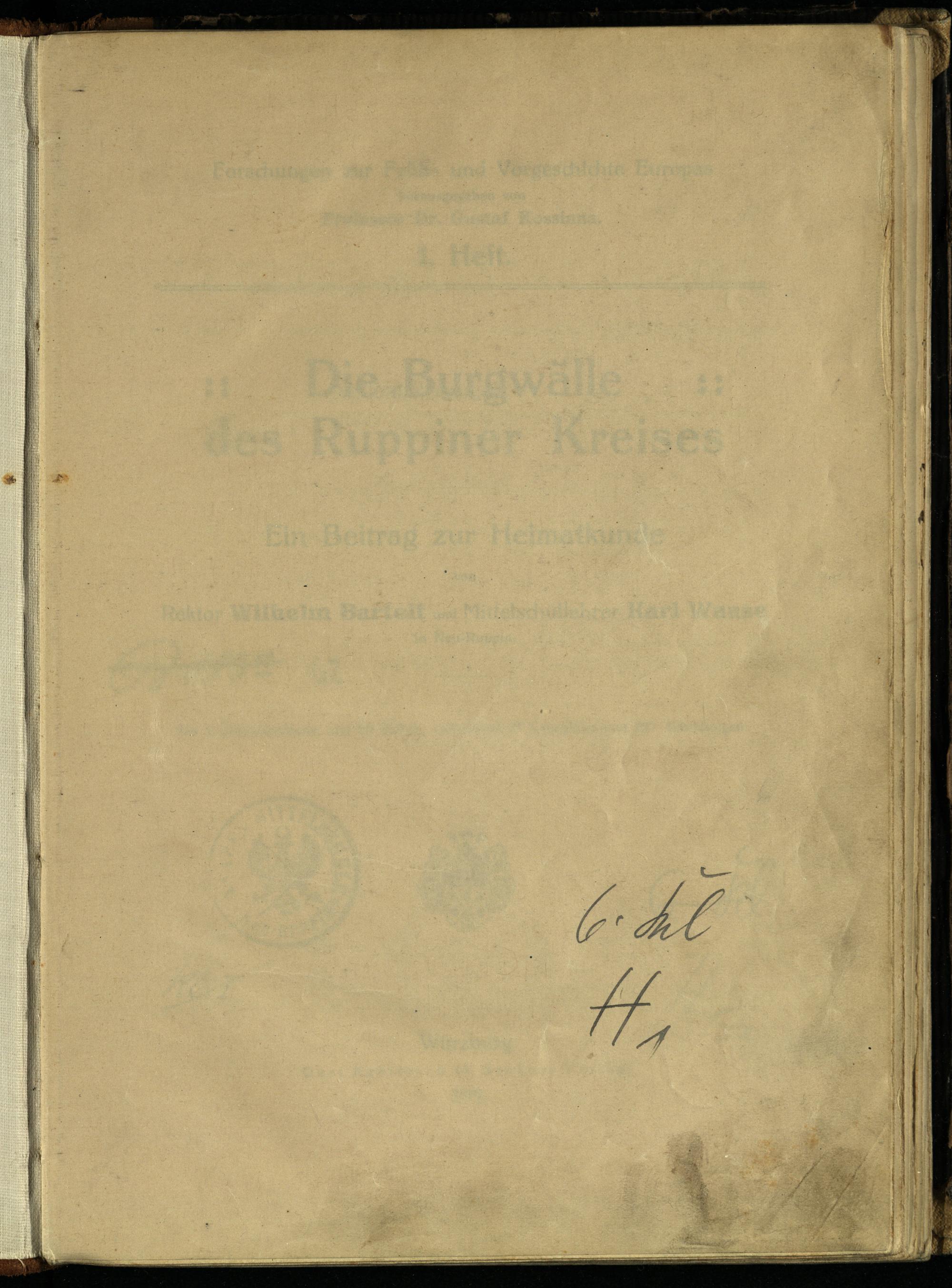 Die Burgwälle des Ruppiner Kreises : ein Beitrag zur Heimatkunde / von Wilhelm Bartelt u. Karl Waase