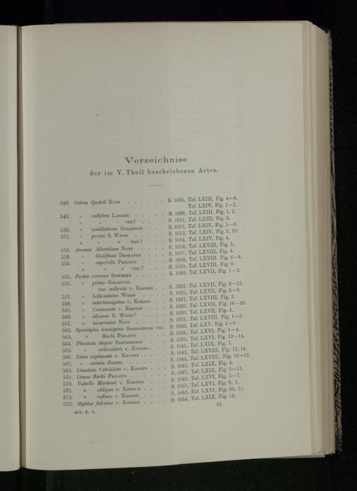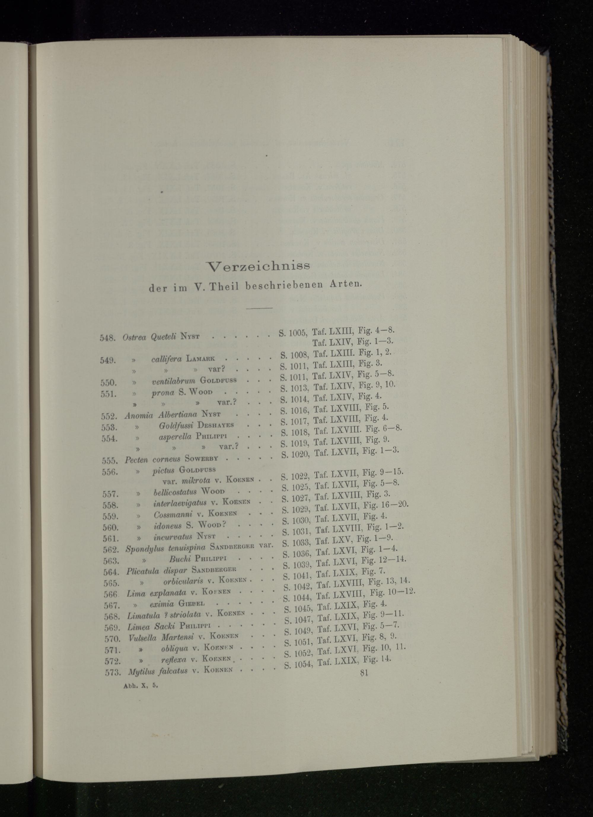 Verzeichniss der im V. Theil beschriebenen Arten.